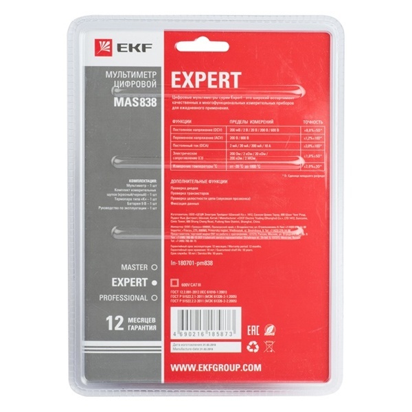 Мультиметр цифровой MAS838 Expert EKF In-180701-pm838