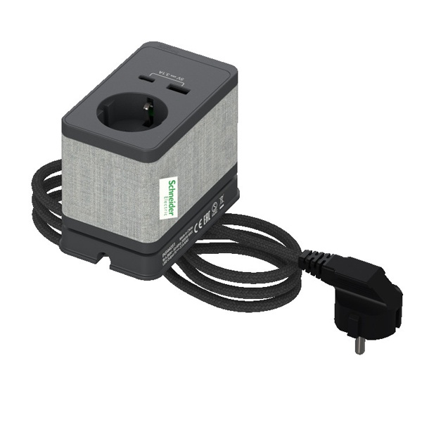 INS44051 Блок розеточный с зажимом настольный 1 розетка (2К+З) и 2 USB (A+C) 3,1А SE Unica System+ антрацит