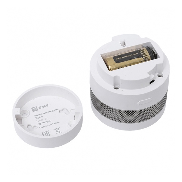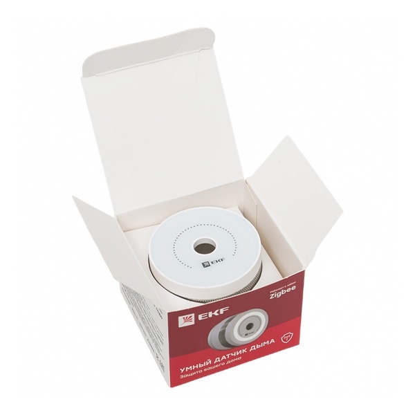 Умный датчик обнаружения дыма от компании ЭКФ предназначен для своевременного обнаружения задымления в помещении на ранних стадиях возгорания. Когда концентрация дыма превышает установленный предел, датчик дыма издает звуковой сигнал и отправляет сигнал тревоги на шлюз. Устройство работает по протоколу Zigbee передаёт данные через хаб в установленное на смартфоне приложение, что позволяет контролировать состояние датчика в любое время и в любом месте. Управление датчиком производится с любого гаджета на базе операционной системы Android 4.4/IOS 8.0 или выше через приложение EKF Connect.