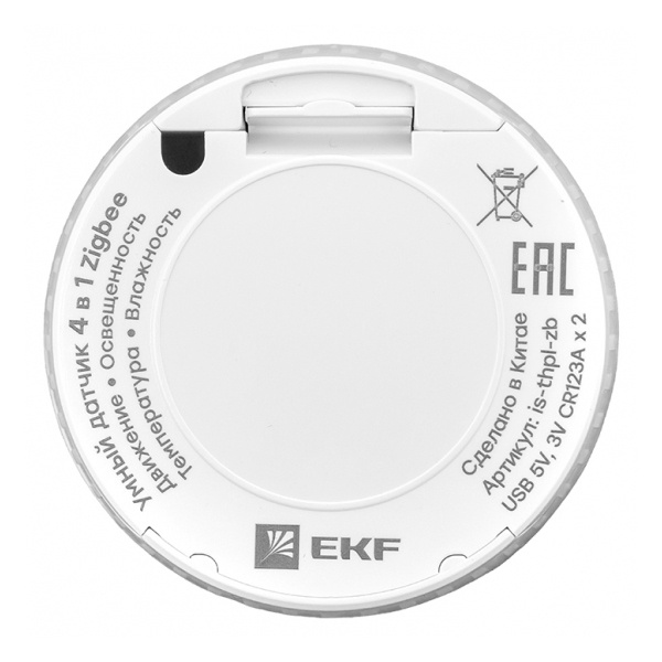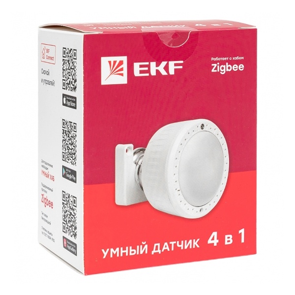 Умный универсальный датчик датчик от компании ЭКФ предназначен для настройки индивидуальной автоматизации в системе умного дома, а также отслеживания температуры, влажности, освещенности, обнаружения движения объектов. Сочетает в себе функции датчиков движения, освещенности, температуры и влажности. Устройство работает по протоколу Zigbee передаёт данные через хаб в установленное на смартфоне приложение, что позволяет контролировать состояние датчика в любое время и в любом месте. Управление датчиком производится с любого гаджета на базе операционной системы Android 4.4/IOS 8.0 или выше через приложение EKF Connect.