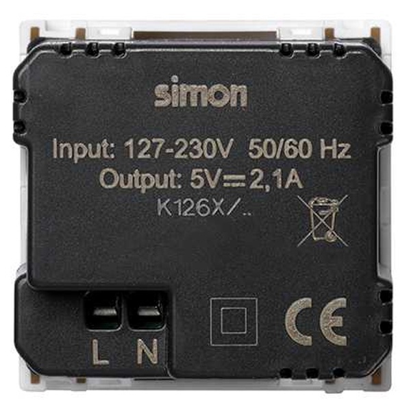 K126E-9 Зарядное устройство Simon K45 2 модуля 2хUSB тип А 5VDC 2,1А 45х45мм, белый фото 2