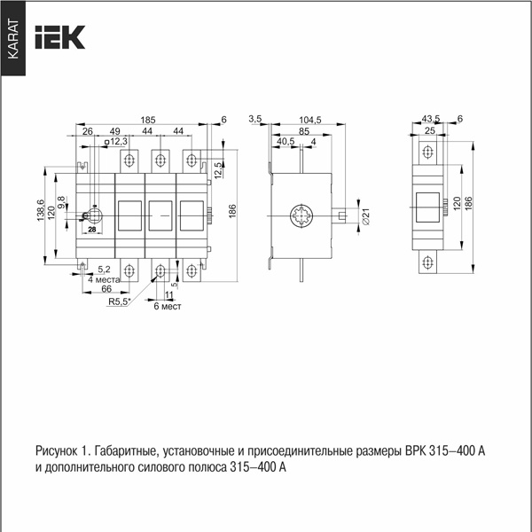Выключатели-разъединители серии Карат торговой марки IEK предназначены для пропускания номинальных токов, включения и отключения электрических цепей номинальным напряжением до 660 В переменного тока частотой 50 и 60 Гц и до 440 В постоянного тока в устройствах распределения электрической энергии.