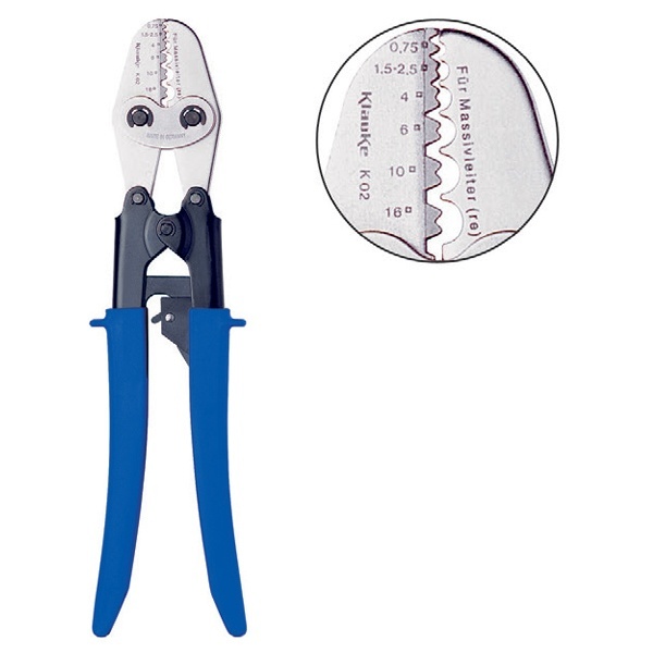 klkK02 K02 Пресс-клещи для медн. трубч. наконечников (0,75-16 мм2, вдавливание) для сплошн. жил
