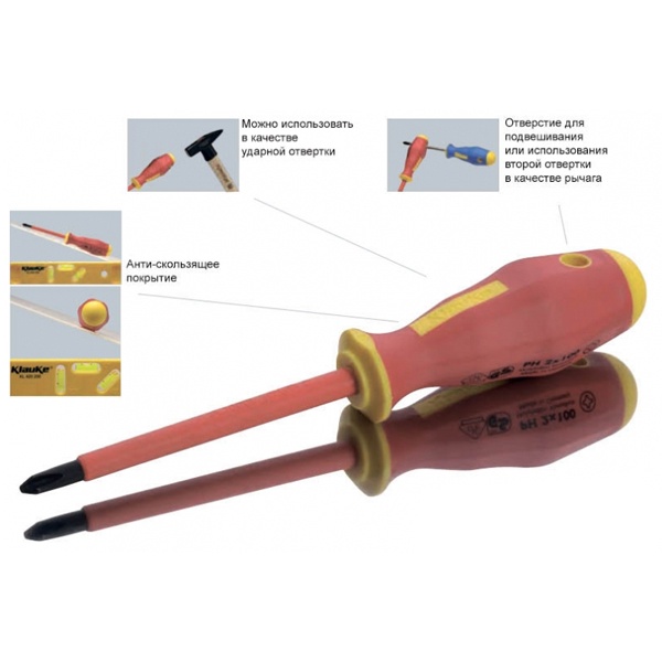 Отвертка диэлектрическая крестовая VDE до 1000В Klauke klkKL110PZ1IS PZ1 / 80 мм klkKL120PZ1IS