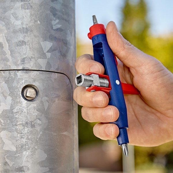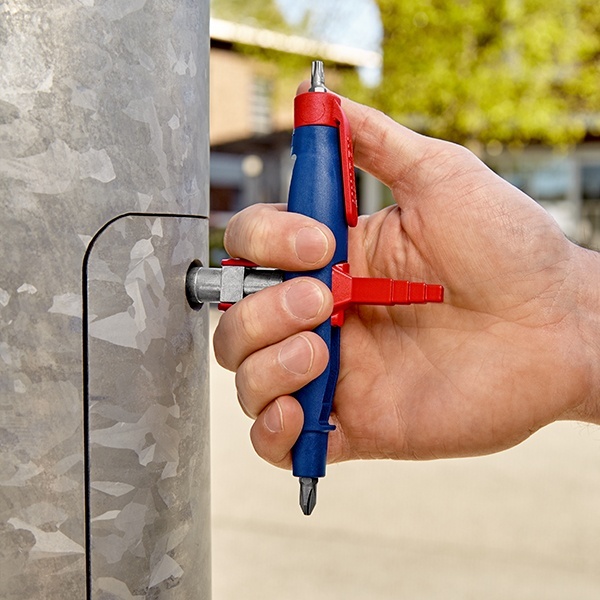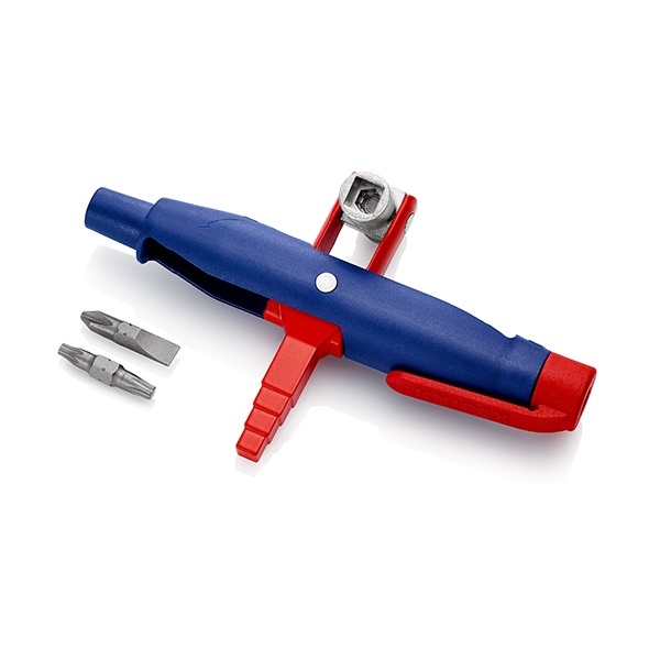 • удобный ключ для электрошкафов в форме ручки с крепежным зажимом