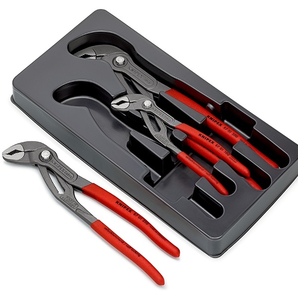 Набор KNIPEX COBRA® в ложементе, 3 пр., комплектация KN-8701XX клещи переставные 180 мм, 250 мм и 300 мм, чёрные, 1К ручки
