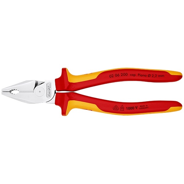 Плоскогубцы комбинированные особой мощности VDE L-200мм хром. Knipex KN-0206200