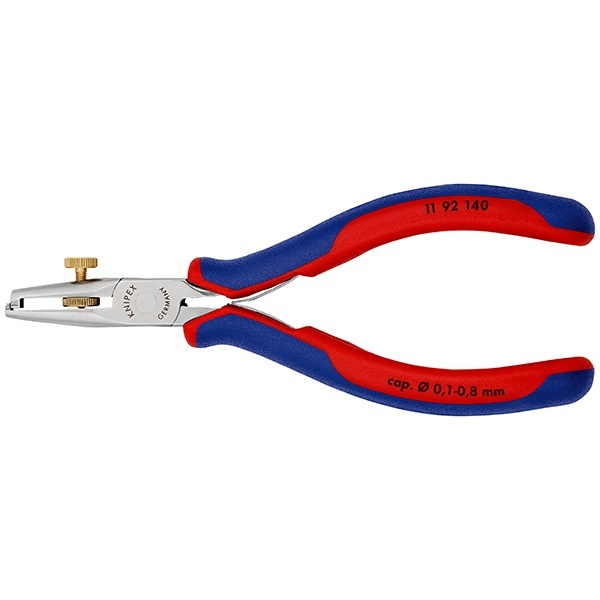 Инструмент Книпекс для снятия изоляции с проводов сечением от 0,1 до 0,8 мм2, длиной 140 мм, с двухкомпонентными чехлами KN-1192140
