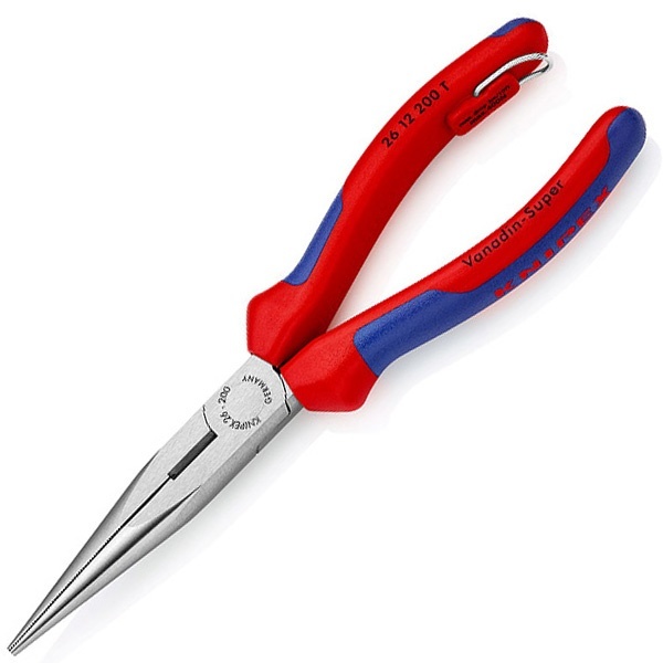 KN-2612200T Длинногубцы прямые с режущими кромками Knipex 200мм фосфатированные со страховочным кольцом