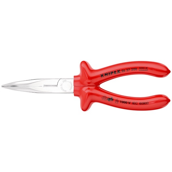 KN-2627200 Длинногубцы диэлектрические Knipex 200мм с режущими кромками, изогнутые, хромированные VDE 1000V