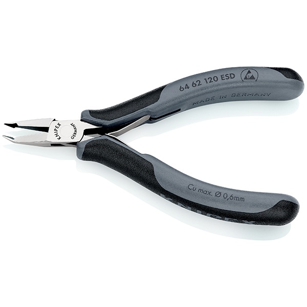 Кусачки торцевые ESD Knipex для электроники узкие губки 65° малая фаска антистатические 120мм KN-6462120ESD
