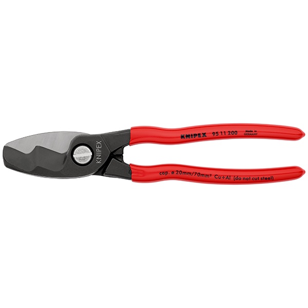 Кабелерез с двойными режущими кромками рез: кабель d 20мм (70кв.мм AWG 2/0) L-200мм обливные рукоятки черн. Knipex KN-9511200