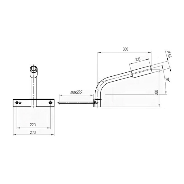 Наряду с кронштейнами для крепления светильников, отличающимися вертикальным расположением, большой популярностью пользуются приспособления, в которых осветительные приборы располагаются под углом к горизонту, обычно не более 15 градусов.