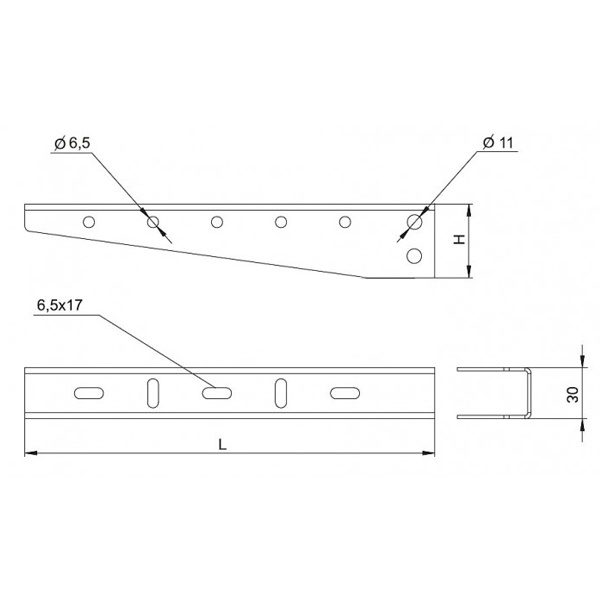 • Диаметр боковых отверстий у окончания консоли: 6,5 мм