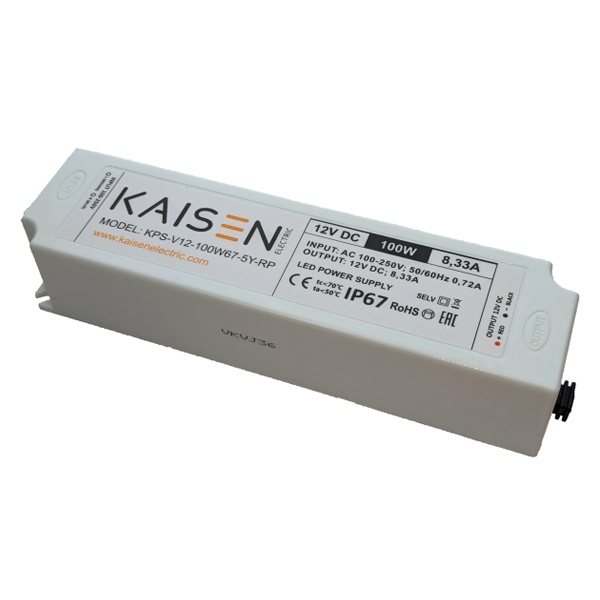 Влагозащищенный источник питания Kaisen (Кайсен) для светодиодных модулей, мощностью 100 Ватт, входное напряжение 100-250 Вольт KPS-V12-100W67-5Y-RP