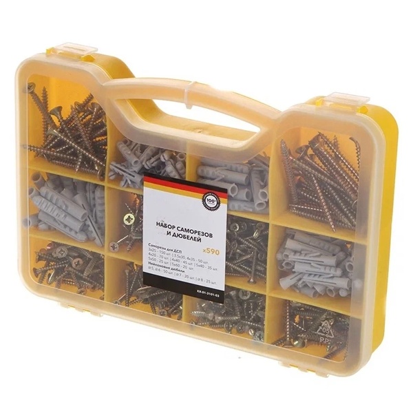 Саморезы и дюбеля в боксе, Кранз, 590 штук. KR-01-3101-03