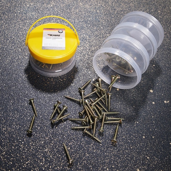 Набор саморезов для ДСП от компании "KRANZ" является хорошим выбором для любых крепежных работ. Саморезы выполнены из лучших за свою цену материалов. Лучше всего подходят для использования по дереву. В наборе имеются саморезы для ДСП и их разновидности.