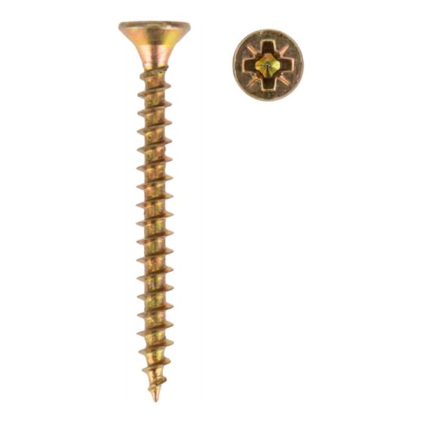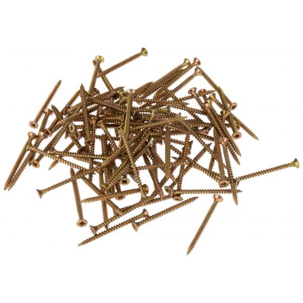 Универсальные стальные оцинкованные желтые саморезы для крепления различных конструкций к дереву, фанере, ДСП. При использования дюбеля применяется к плотным материалам.