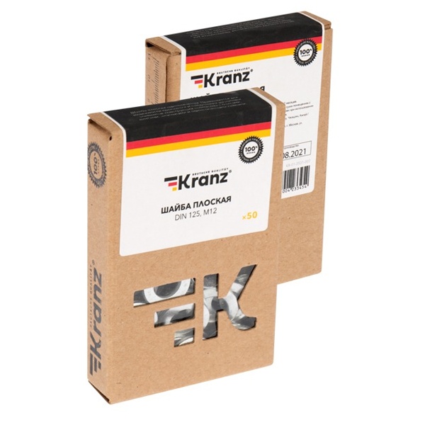 Шайба плоская KRANZ DIN 125, M12, короб (50 шт./уп.)