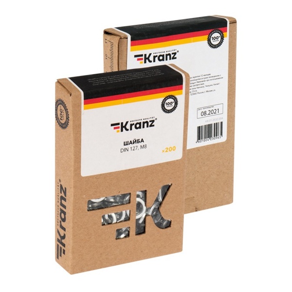 Шайба гровер пружинная М8 Kranz в коробке по 200 штук KR-01-3532-004