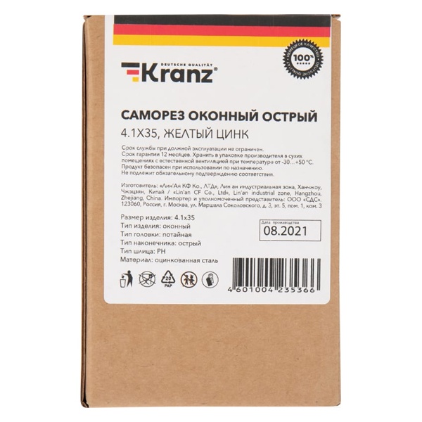 Саморез острый оконный 4.1х35 с покрытием жёлтый цинк представляет собой универсальный крепёжный элемент, специально разработанный для монтажа оконных конструкций, а также для фиксации различных элементов из дерева, пластика и тонкостенного металла. Благодаря диаметру 4,1 мм и длине 35 мм, этот саморез обеспечивает надёжное и прочное соединение, выдерживая значительные механические нагрузки, что особенно важно при установке оконных рам, откосов и доборных элементов. Остроконечный наконечник позволяет легко и быстро проникать в материал без предварительного сверления, значительно ускоряя процесс монтажа и снижая трудозатраты. Особая форма резьбы обеспечивает уверенное вкручивание с минимальным усилием, снижая риск растрескивания или деформации деталей, даже при работе с хрупкими материалами. Покрытие из жёлтого цинка не только придаёт изделию эстетичный внешний вид с характерным золотистым оттенком, но и защищает его от коррозии, продлевая срок службы крепежа в условиях повышенной влажности или при наружном использовании. Такое антикоррозийное покрытие делает саморез особенно актуальным для применения при монтаже пластиковых окон, отделки фасадов и других наружных работ. Кроме того, покрытие снижает трение при закручивании, что облегчает монтаж и снижает износ инструмента. Саморезы данной серии совместимы с различными типами отвёрток и шуруповёртов благодаря стандартному шлицу, обеспечивая надёжную посадку биты и предотвращая срыв граней. Универсальность применения делает эти саморезы востребованными не только среди профессиональных строителей и монтажников, но и среди домашних мастеров, которые ценят качество, надёжность и удобство в работе. Оптимальная длина позволяет использовать их как для поверхностного крепления, так и для более глубокого монтажа, обеспечивая надёжное удержание даже массивных конструкций. Саморез острый оконный 4.1х35 жёлтый цинк — это качественный крепёж, который сочетает в себе прочность, устойчивость к коррозии и удобство монтажа, делая его идеальным выбором для различных строительных и ремонтных задач, как внутри помещений, так и на открытом воздухе.