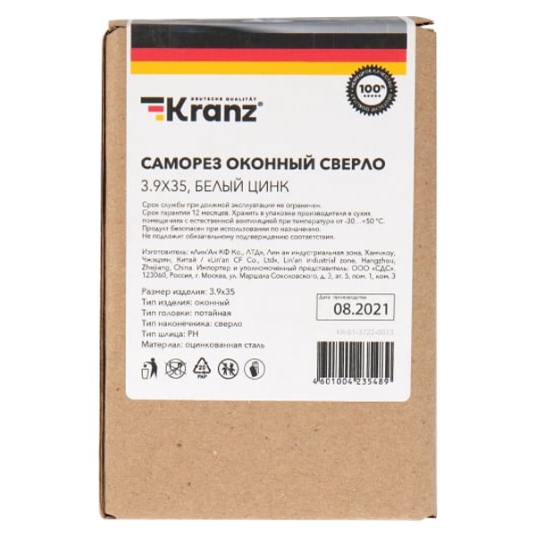 Саморез оцинкованный для оконных рам со сверлом, 3,9x35 мм, 500 штук KR-01-3722-0013