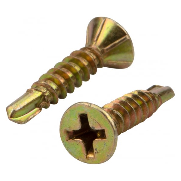 Стальные оцинкованные (желтые) саморезы cо сверлом и насечками на конусной части головки используются для крепления металлического профиля в рамных пластиковых конструкциях, подходит для автоматических линий.