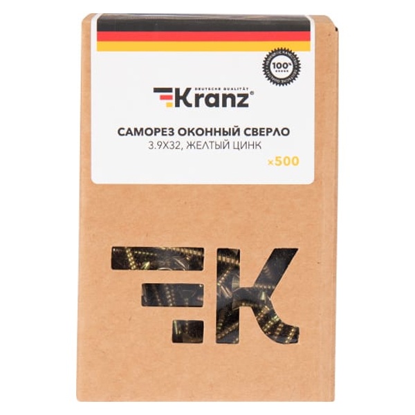 Саморез оцинкованный (Желтый цинк) для оконных рам со сверлом, 3,9x32 мм, 500 штук KR-01-3722-005