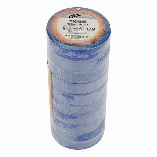 Изолирующая лента ПВХ 15мм х 10м синяя Kranz, упаковка 10 штук KR-09-2005