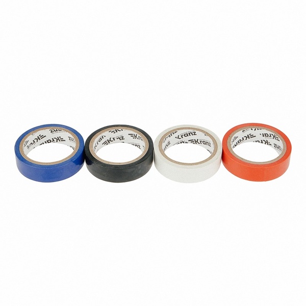 Комплект изолент «Авто» торговой марки Kranz представляет собой набор из 4 изолент разных цветов, в который входят белый, черный, красный и голубой ролики. Длина одного ролика составляет 5 метров. Данный комплект очень удобен для применения как профессионалами в автомобилях, электрике, так и в домашних условиях при осуществлении ремонтов. Основное назначение изоляционной ленты состоит в электрической изоляции, надежном соединении, герметизации и защите от внешних факторов различных кабелей, проводов и шнуров. Также цветная лента применяется с целью маркировки кабелей. Это незаменимый и полезный материал, который обеспечивает высокое качество обмотки и защищает места соединения от влаги, пыли, грязи, механических повреждений и перепадов температуры окружающей среды. Такая изолента изготовлена из качественного ПВХ с клеевым слоем. Ее ширина составляет 15 мм, толщина – 0,13 мм. К особенностям такого материала относят выдержку напряжения до 6000 Вольт и растяжения до 180% и эксплуатацию при температуре от -10 до +50 градусов Цельсия. Изоляционная лента не поддерживает горение, устойчива к УФ-излучению, а также слабым растворителям и солям.