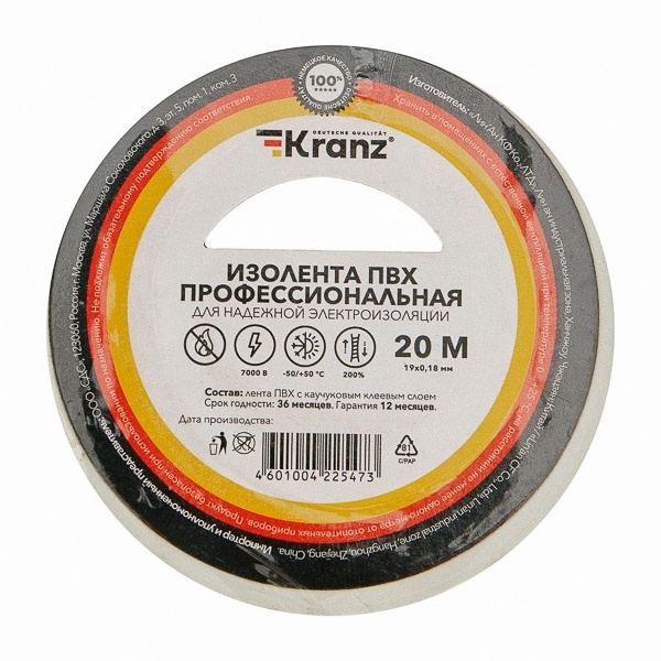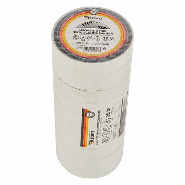 Профессиональная изолентa белая Kranz - новинка в семействе расходных материалов торговой марки Kranz. Используется для обмотки проводов и кабелей с целью их изоляции. Температурный диапазон работы от -50°С до +50°С. Изолента Kranz устойчива к растяжению и разрывам, не поддерживает горение. Также находит широкое применение в бытовых целях.