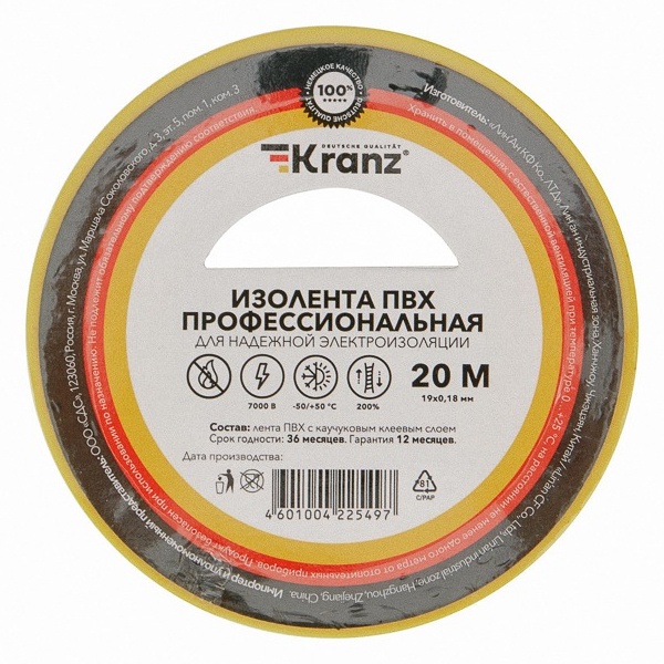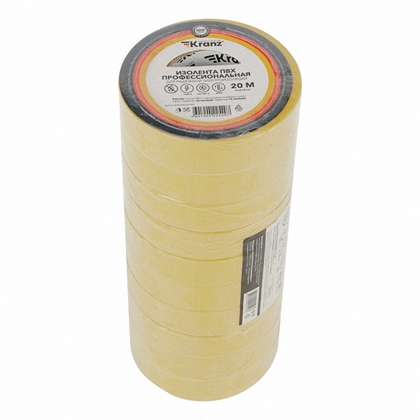 Профессиональная изоляционная лента Kranz класса PREMIUM - новинка в семействе расходных материалов торговой марки Kranz. Используется для обмотки проводов и кабелей с целью их изоляции. Также находит широкое применение в бытовых целях. Изолента Kranz устойчива к растяжению и разрывам, не поддерживает горение.