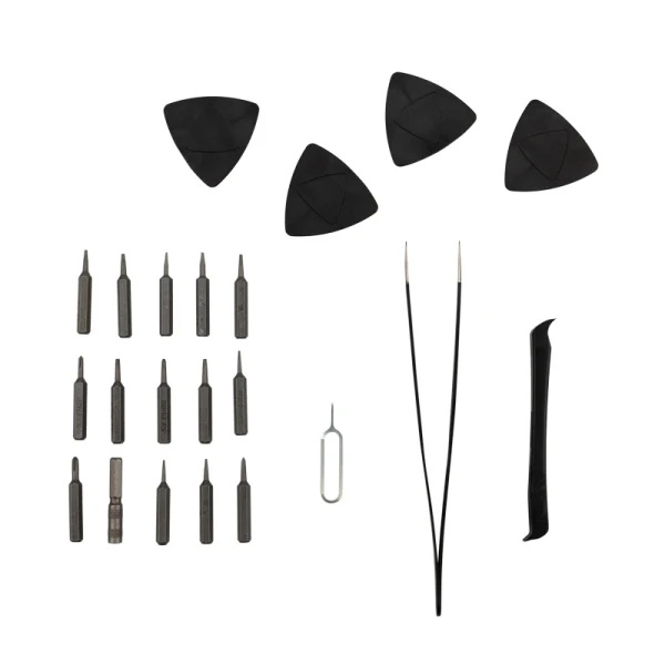 - Биты: PH000, PH00, PH0, SL1.5, SL2.0, Y0.6, POZI 2.5, M2.5, T1, T2, T3, T4, T5, TORX: 0.8, 1.2, 1.5