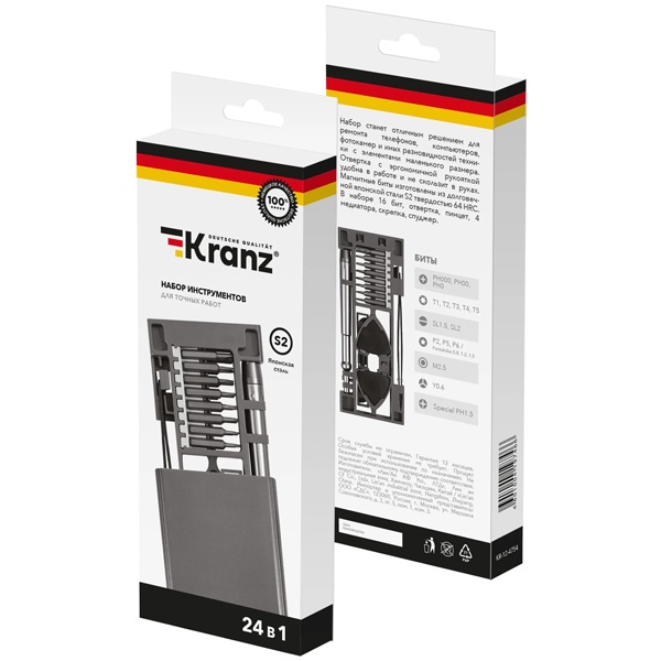 Набор отверток КРАНЗ для точных работ, 24 магнитные насадки KR-12-4754