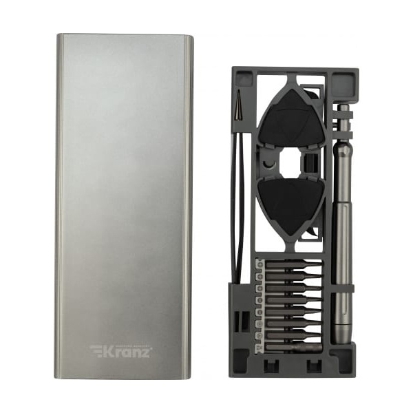 Набор отверток для точных работ KRANZ RA-04 отлично подходит для ремонта телефонов, компьютеров, приемников и для многих популярных приборов, которые используются в быту.Выполнен из качественной инструментальной стали S2, обладающей высокой прочностью к механическим повреждениям. Точно подобранные по характеристикам магнитные насадки отлично подходят для профессионального ремонта и для мелких бытовых работ. Облегченный высокопрочный алюминиевый кейс и рукоятка.Компактный кейс удобен в транспортировке и с легкостью открывается одной рукой.