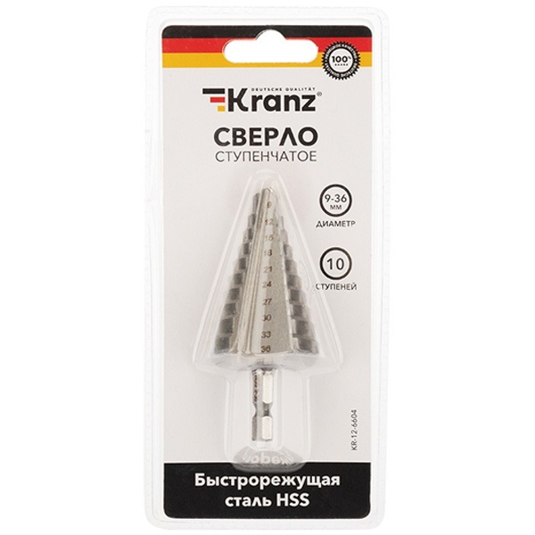 Конусное многоступенчатое сверло Kranz 9.0-36.0 мм KR-12-6604