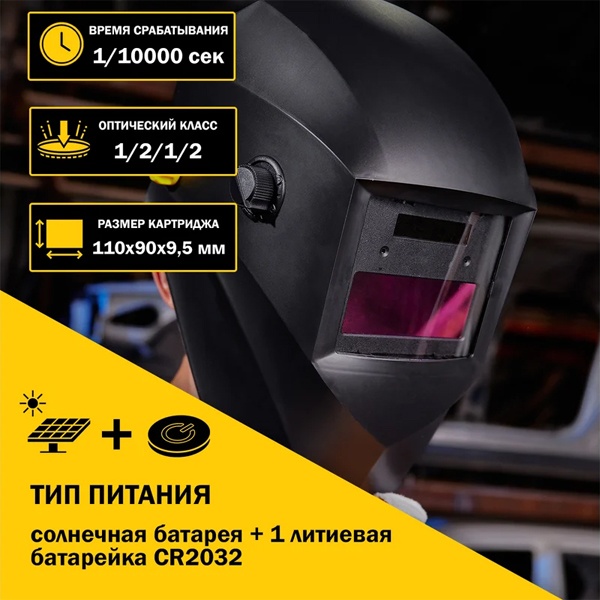 Маска подходит для выполнения сварочных работ методами MMA (ручная дуговая сварка) и MIG/MAG (полуавтоматическая сварка в среде защитных газов), что делает её универсальным решением для профессионалов и любителей.
