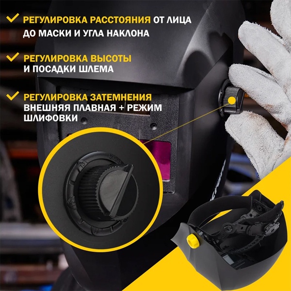 - Регулировка затемнения: Внешняя, плавная + режим шлифовки