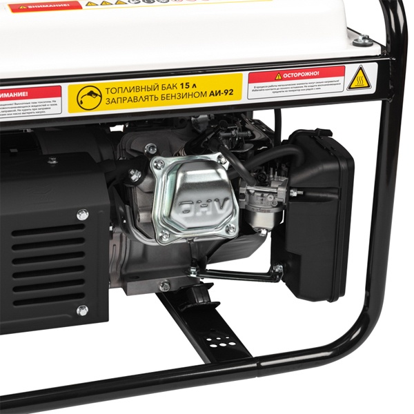 Прочная стальная рама с возможностью установки колес и ручек защищает внутренние компоненты от внешних воздействий и облегчает транспортировку. Многоступенчатая система защиты предотвращает повреждение двигателя и электрической части при перегрузках, низком уровне масла и других внештатных ситуациях.