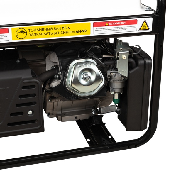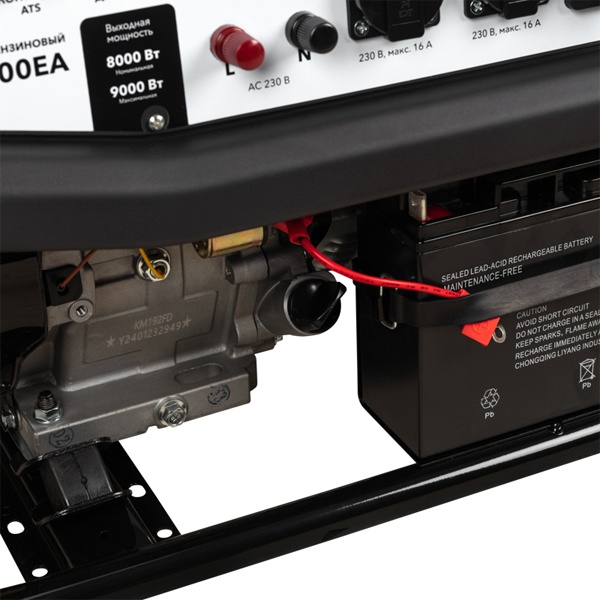 Генератор работает на бензине АИ-92, оснащён электростартером с автоматической воздушной заслонкой, что позволяет легко запускать устройство поворотом ключа, даже в холодную погоду.