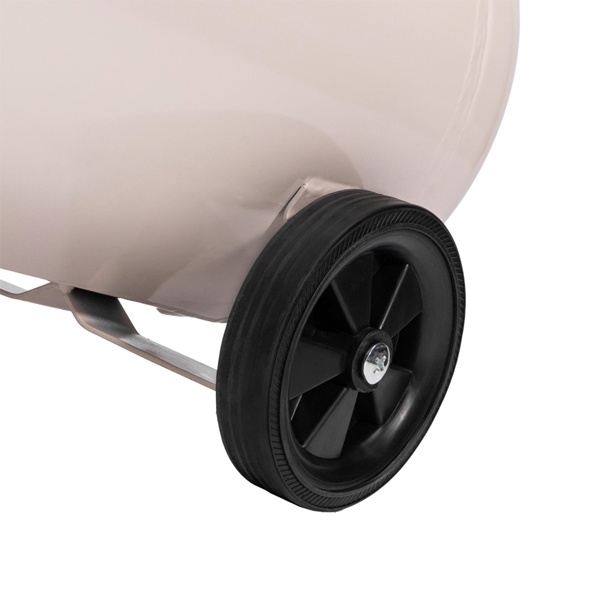 Удобство в эксплуатации обеспечивают прорезиненная эргономичная рукоятка, транспортировочные колеса и устойчивые резиновые опоры.