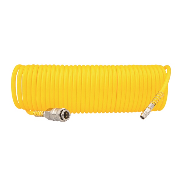 Шланг длиной 10 метров предназначен для подключения компрессора к пневматическим инструментам. Выполнен из прочного полиуретана и имеет спиралевидную форму, что обеспечивает отличную гибкость, устойчивость к износу, перекручиванию и низким температурам. Оснащён быстросъемными соединениями для удобного и надежного подключения.
