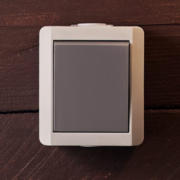 Герметичный выключатель с двух мест серого цвета с одной клавишей для открытой проводки, Кранз Индастриал. KR-78-0610