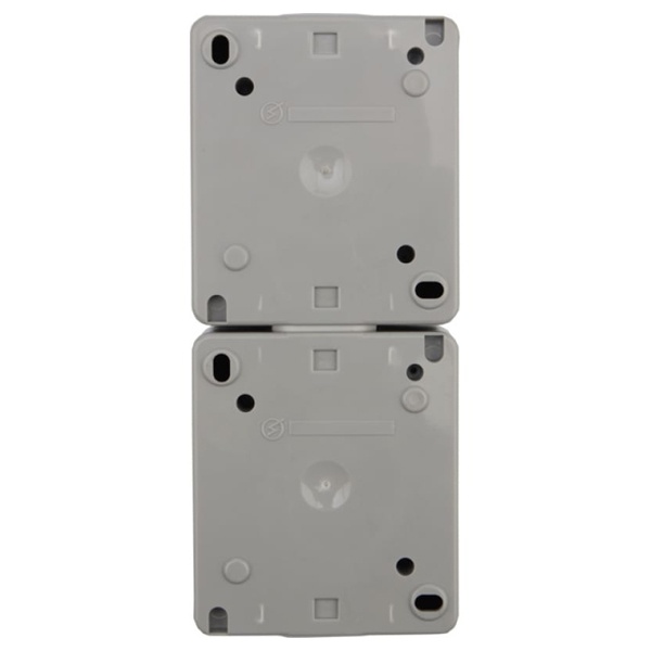 Герметичная электрическая двухпостовая розетка немецкого стандарта серого цвета для вертикальной накладной установки, Кранз Индастриал. KR-78-0615