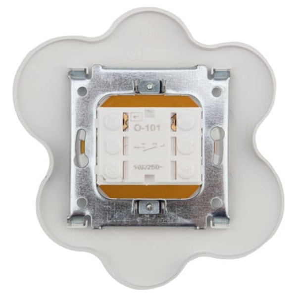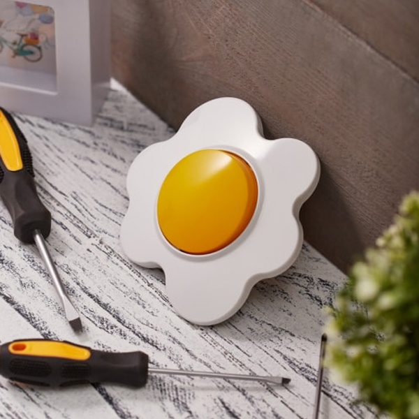 Одноклавишный выключатель скрытого монтажа для детских комнат с белой рамкой и желтой клавишей, Кранз Хэппи яичница. KR-78-0629