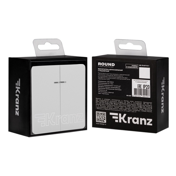 • Выключатель двухклавишный с подсветкой Kranz Miele Round 10А с рамкой перламутр