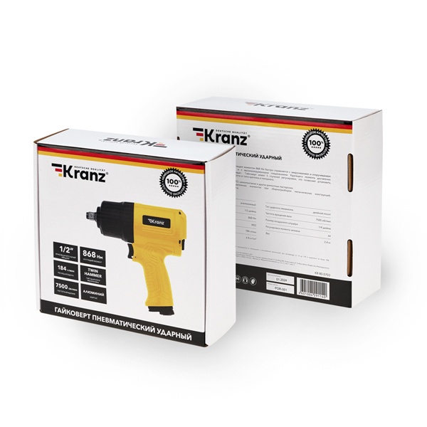 Пневмогайковерт ударный с крутящим моментом 868Нм, 1/2 дюйма KR-80-0703