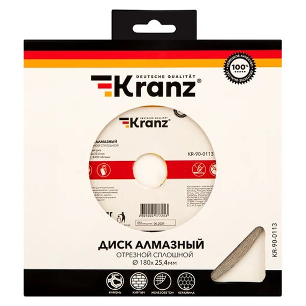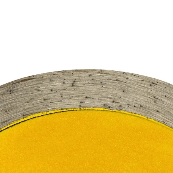 Благодаря особым пропорциям материалов, при истирании диска зачищаются новые слои алмазов, повышается производительность, ресурс работы. «Сплошная» кромка обеспечивает точность резки.