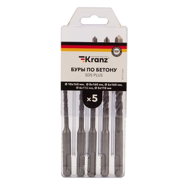 Набор буров по бетону диаметром 5,6,6,8,10 мм Кранц KR-91-0406