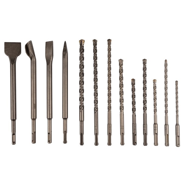 Набор буров и долот KRANZ (13 предметов) применяется для перфораторов с типом крепления SDS PLUS при сверлении отверстий, а также при долбежных и демонтажных работах по кирпичной кладке, бетону, природному и искусственному камню.